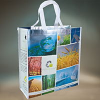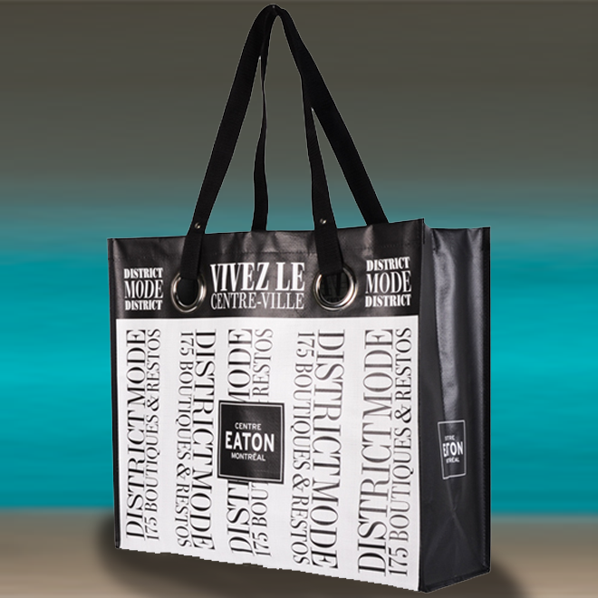 STRATÉGIE ET EXÉCUTION : Pour la promotion, le client a opté pour un sac de PP non-tissé avec une impression laminée en rotogravure. Il était très impor- tant de bien respecter les couleurs du design original du sac puisque celui-ci serait utilisé parmi une vaste gamme de produits promotionnels et les couleurs devraient être identiques d’un produit à l’autre.